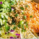 A light and refreshing salad featuring crunchy vegetables and flavorful ramen noodles, tossed in a tangy dressing.